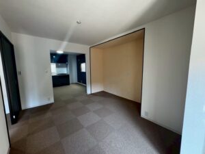 ここの空間は投資家さんとどの様な空間にするか、何回も悩んだ結果「収納をテレビ掛け出来る場所にする」というご決定に作成しました。